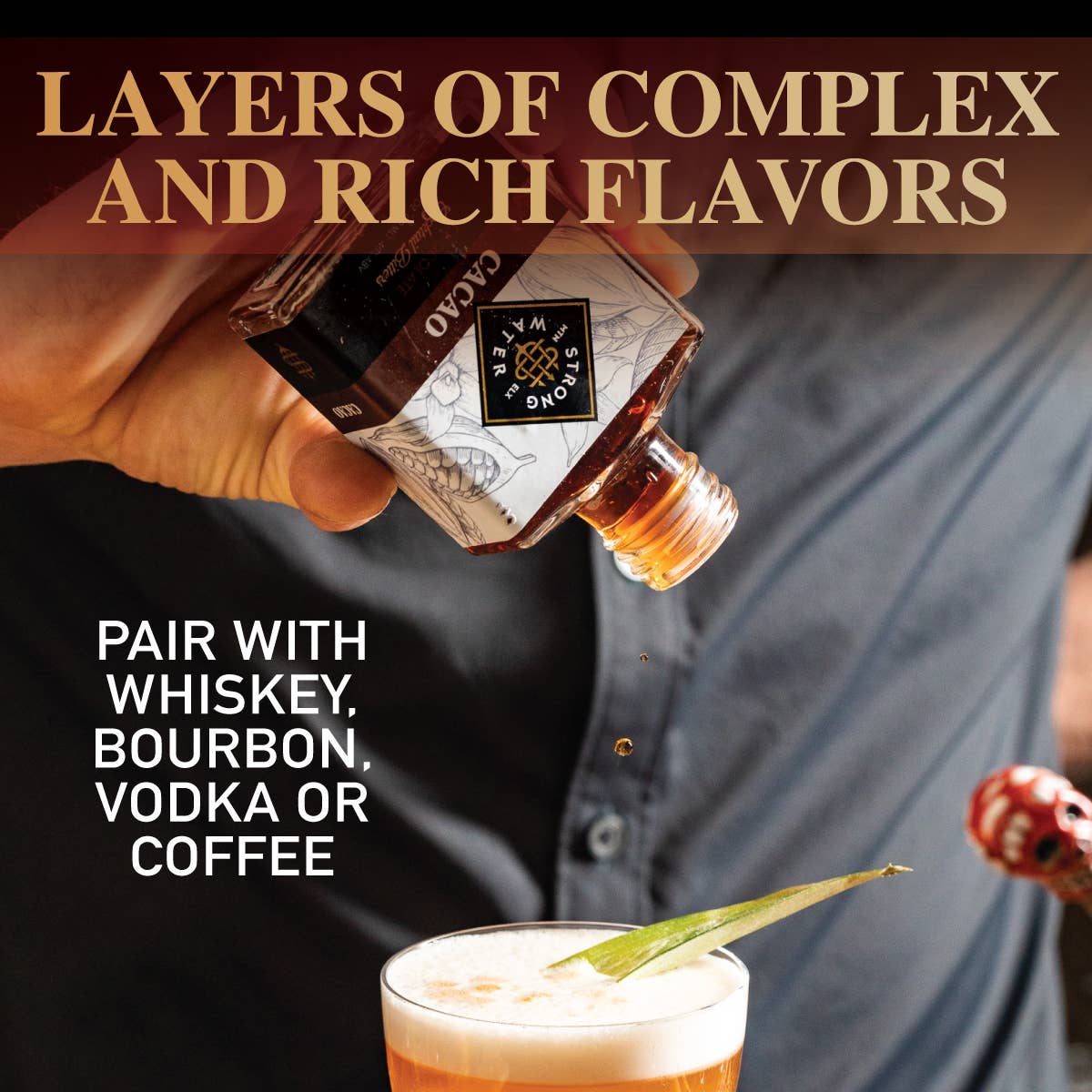 Embodying the mystic history of cacao, these bitters swirl around your senses reminding you of how the world fell in love with chocolate. The most delicious and dynamic chocolate bitters you'll ever taste with herbal notes of bitter cherry bark, warming vanilla aromatics, and hints of almond. Pairs well with many cocktails such as The Switchback, Sazerac Variation, Willet Happen, Chocolate Old Fashioned, and Wild Widow. Also a great addition to a mocktail.