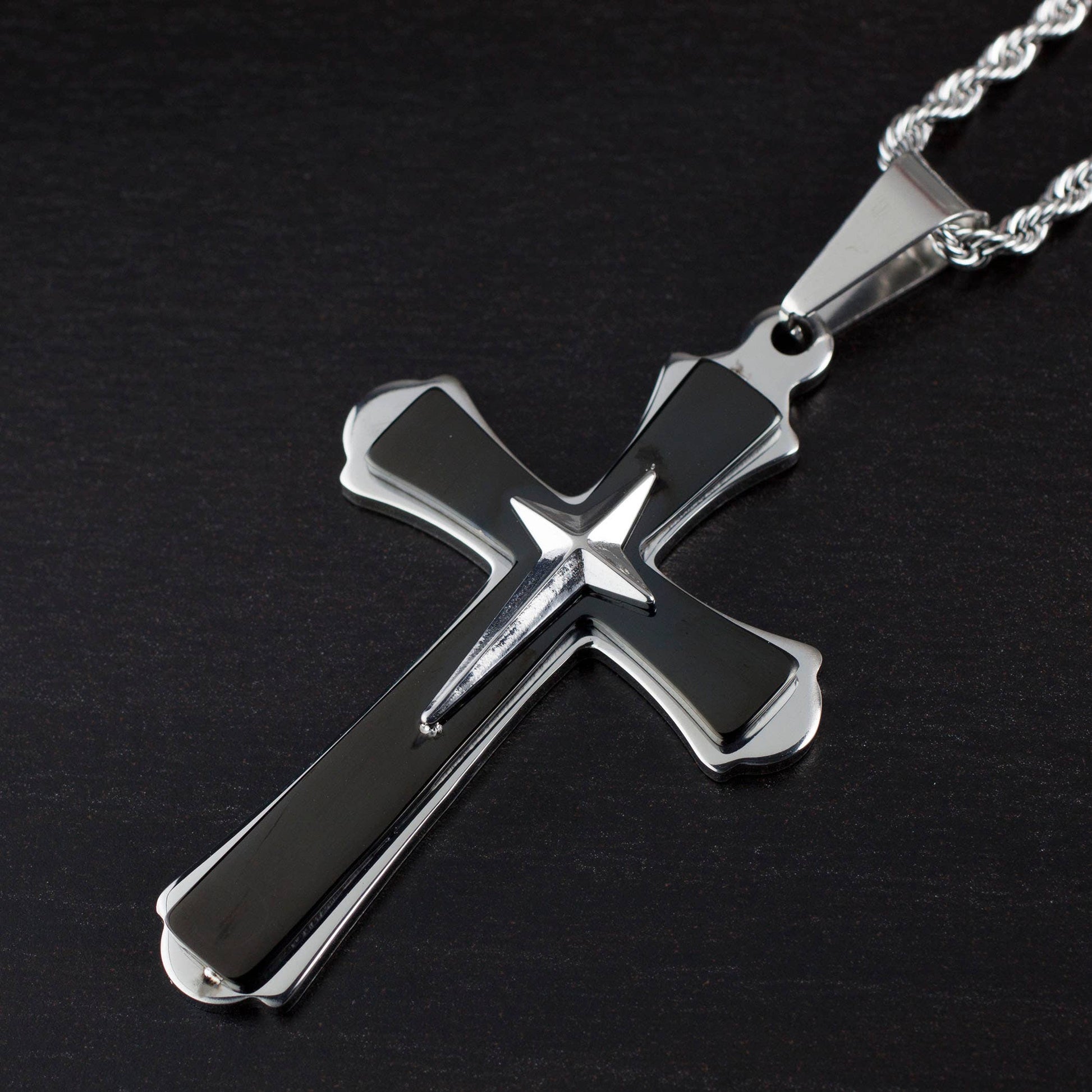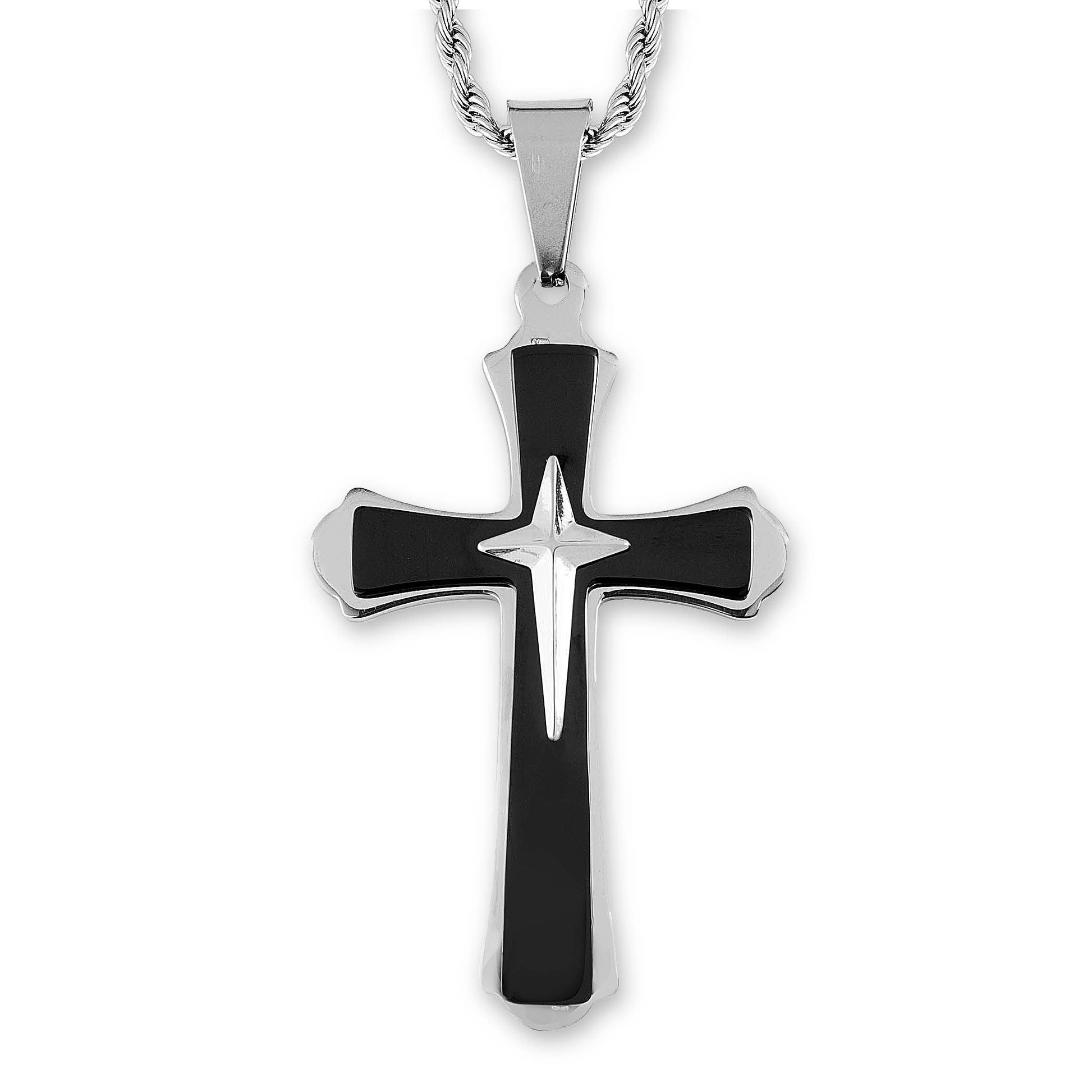 Flared Triple Layer Two Tone Stainless Steel Cross Pendant